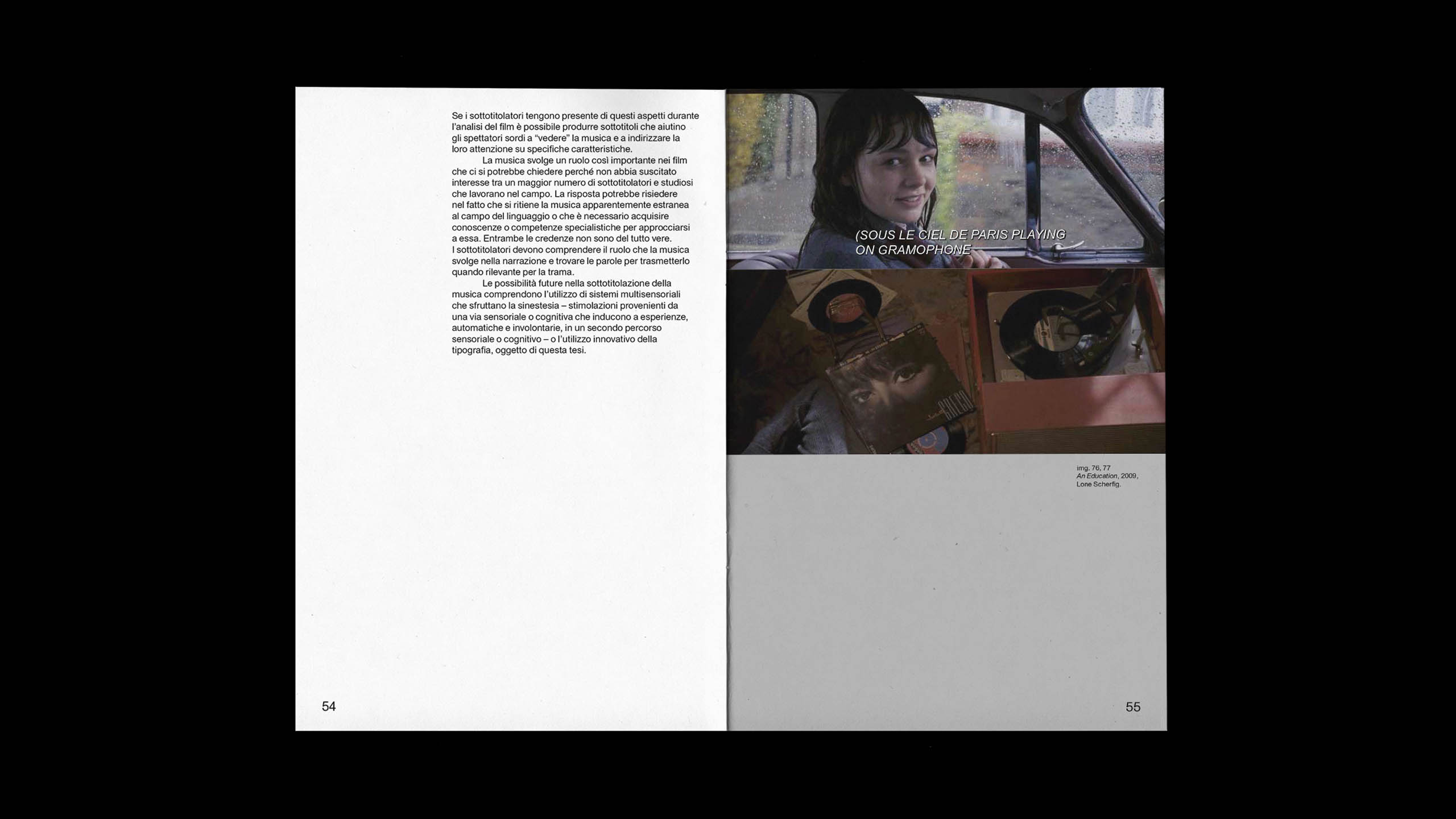 Subtitles are an essential tool for people with hearing disabilities to access audiovisual content. Despite their importance, however, they have never received the proper attention in terms of design. The aim of this thesis project is to explore the expressive power of subtitles as a means to communicate all the auditory elements of films. The goal is to develop a subtitling system that enhances the viewing experience for deaf people while remaining invisible to hearing individuals.